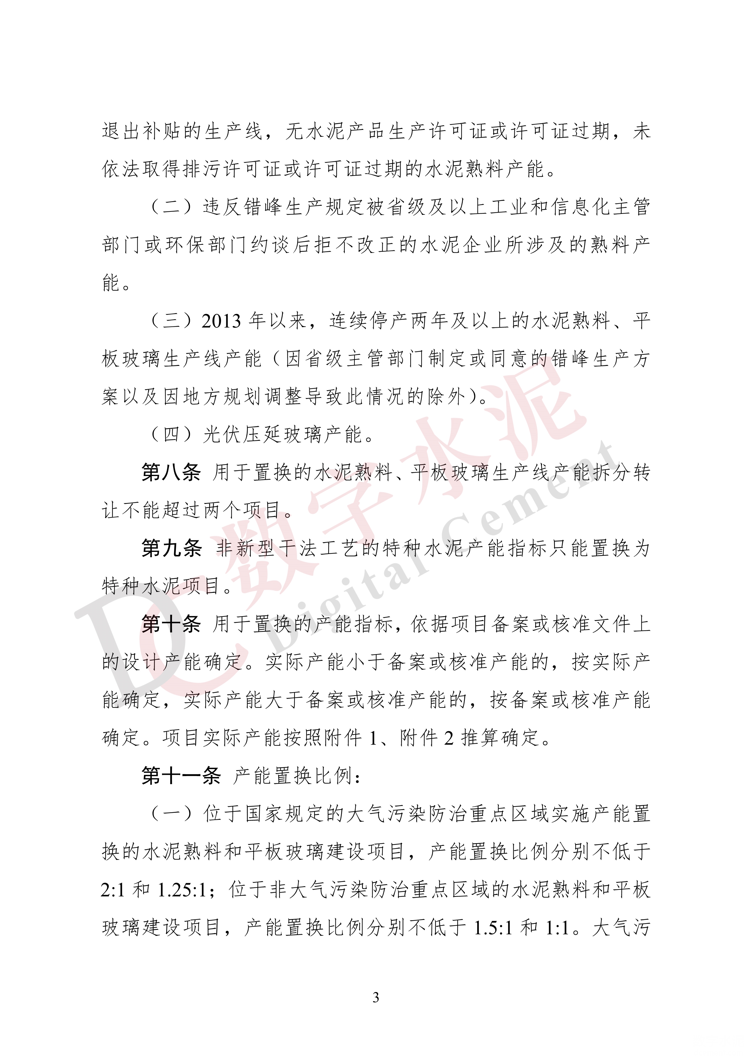 (二)產(chǎn)能指標(biāo)的認(rèn)定更加嚴(yán)格。一是強(qiáng)調(diào)了產(chǎn)能指標(biāo)必須在各省按年度更新并公告的本地區(qū)生產(chǎn)線清單內(nèi)。二是為避免“僵尸產(chǎn)能”復(fù)活,規(guī)定連續(xù)停產(chǎn)兩年及以上的水泥熟料、平板玻璃生產(chǎn)線不能用于產(chǎn)能置換。三是明確跨省置換應(yīng)召開聽證會(huì),接受公眾和媒體監(jiān)督。