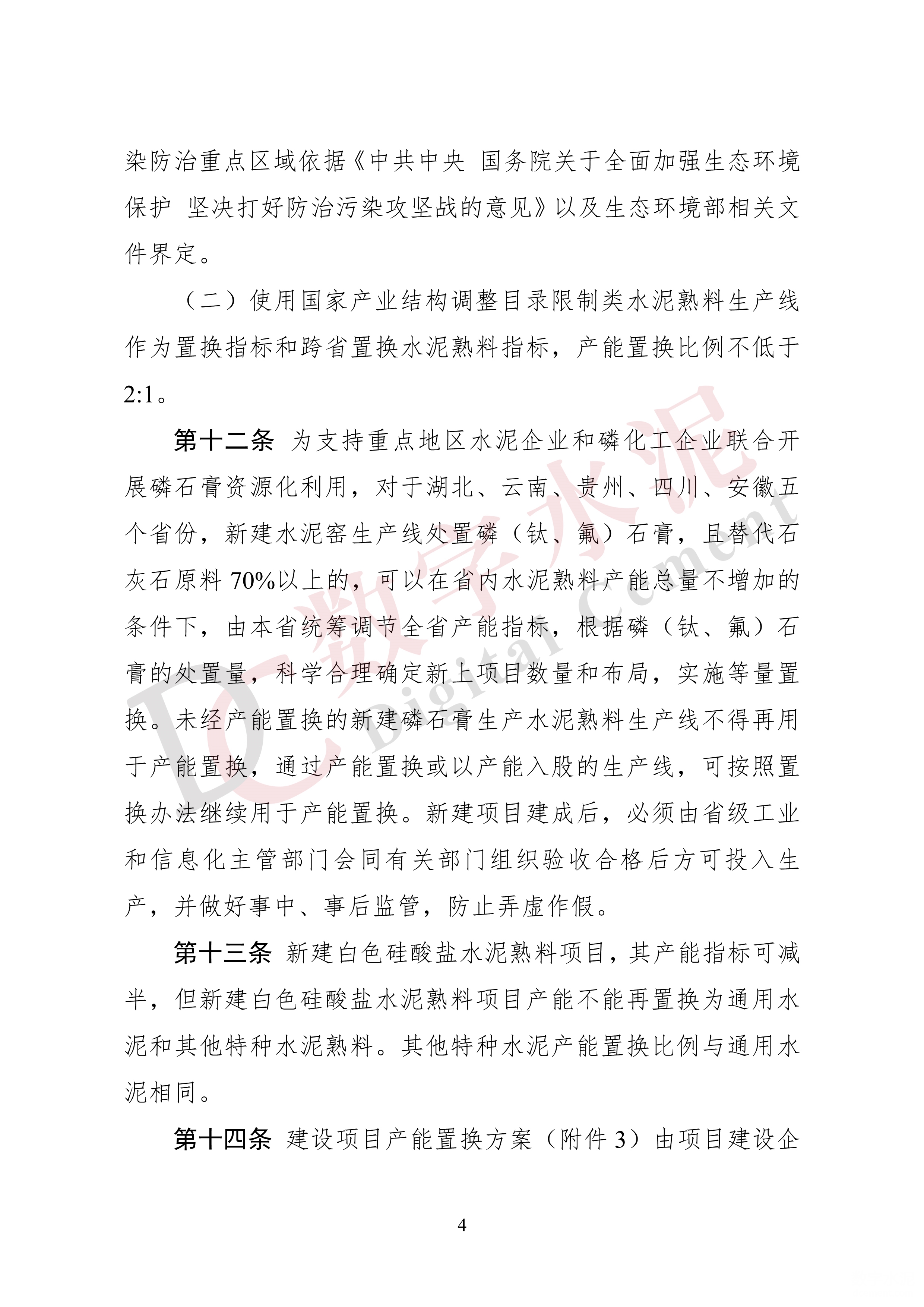 (一)置換比例和置換范圍根據(jù)新形勢做了調(diào)整。一是提高了水泥項(xiàng)目產(chǎn)能置換比例,大氣污染防治重點(diǎn)區(qū)域水泥項(xiàng)目由1.5:1調(diào)整至2:1,非大氣污染防治重點(diǎn)區(qū)域由1.25:1調(diào)整至1.5:1。二是加大低效產(chǎn)能壓減力度,對產(chǎn)業(yè)結(jié)構(gòu)調(diào)整目錄限制類的水泥產(chǎn)能以及跨省置換水泥項(xiàng)目,產(chǎn)能置換比例一律不低于2:1。三是鼓勵(lì)固廢綜合利用,湖北、貴州等五省磷(鈦、氟)石膏生產(chǎn)水泥項(xiàng)目產(chǎn)能可實(shí)施等量置換。四是保障光伏發(fā)展需要,新上光伏壓延玻璃項(xiàng)目不再要求產(chǎn)能置換。