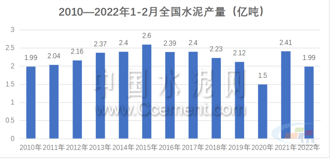 3月15日,國家統(tǒng)計(jì)局消息,1—2月全國水泥產(chǎn)量19933萬噸,同比減少17.8%。總產(chǎn)量跌回12年前,僅高于疫情影響嚴(yán)重的2020年,與2010年基本持平。