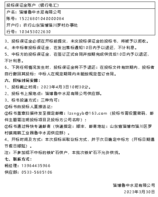 【招標(biāo)公告】魯中水泥超低排放評(píng)估監(jiān)測(cè)技術(shù)服務(wù)、鐵礦石招標(biāo)