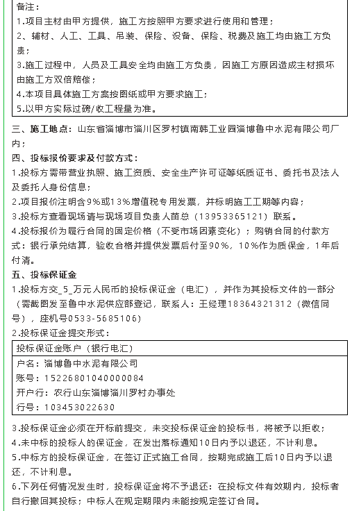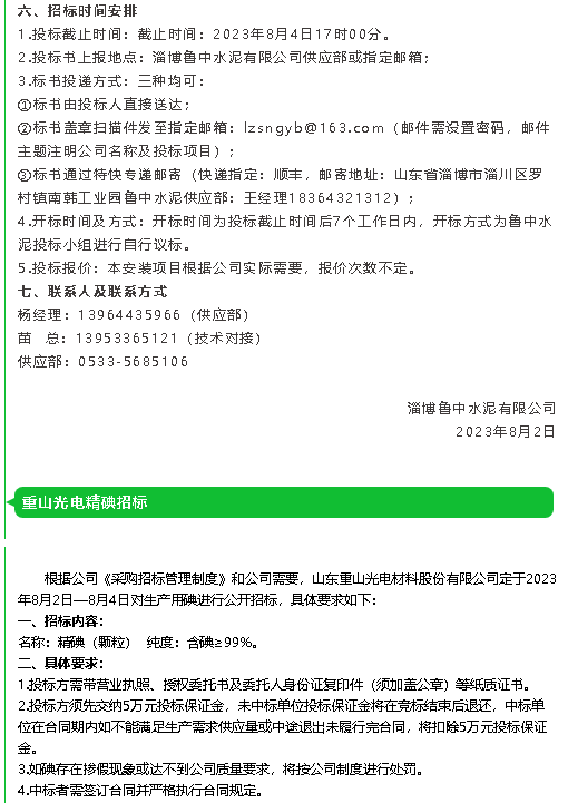 【招標公告】魯中水泥、重山光電