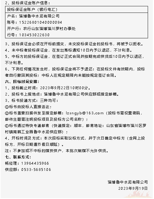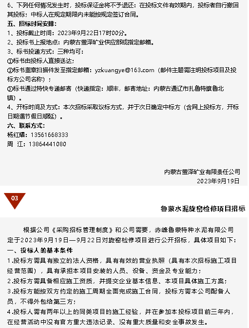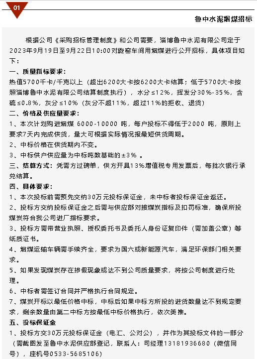 【招標(biāo)公告】魯中水泥煙煤、螢澤礦業(yè)物料運輸、魯蒙水泥旋窯檢修項目招標(biāo)