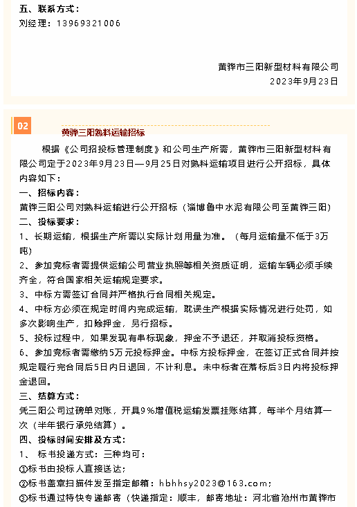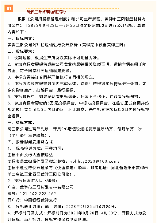 【招標(biāo)公告】黃驊三陽礦粉運輸、熟料運輸、石子招標(biāo)