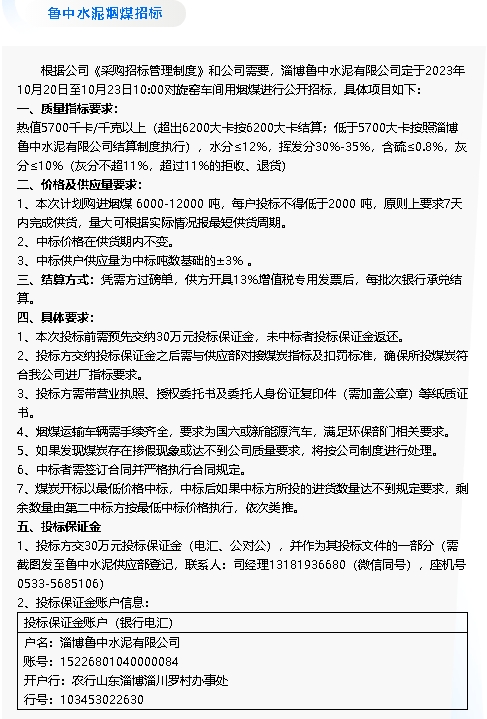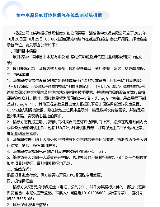 【招標(biāo)公告】魯中水泥