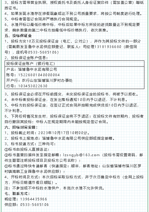 【招標公告】魯中水泥