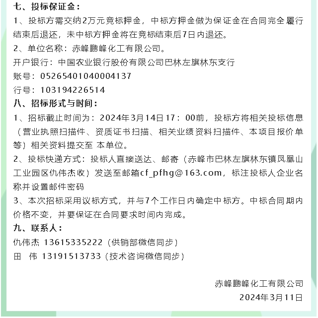 【招標公告】鵬峰化工