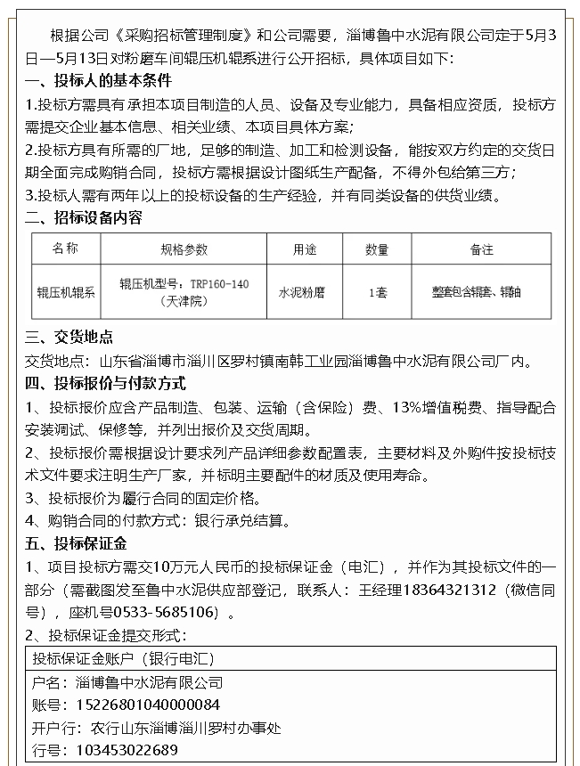 【招標(biāo)公告】魯中水泥