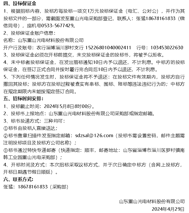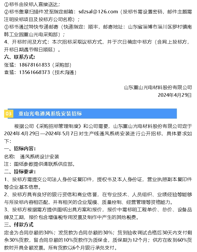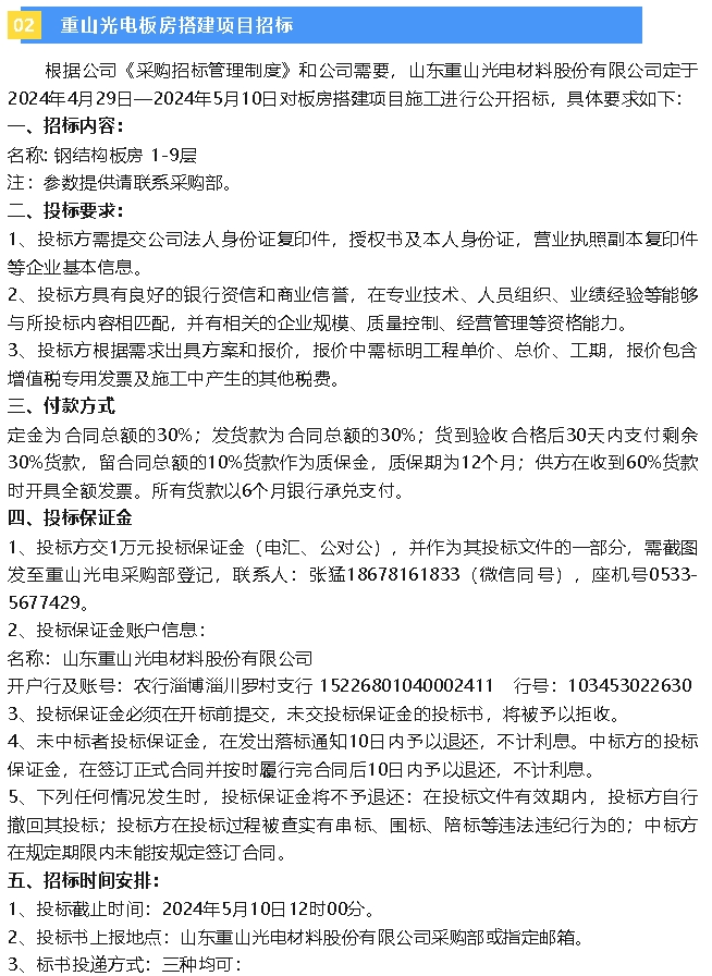 【招標(biāo)公告】重山光電