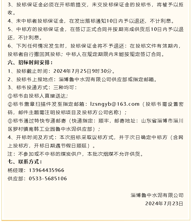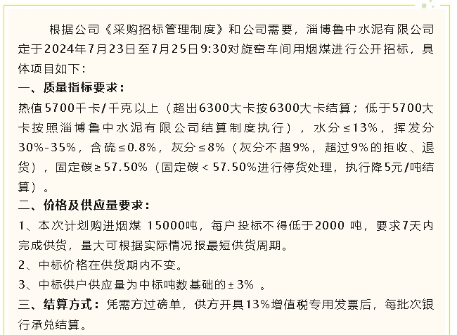【招標公告】魯中水泥