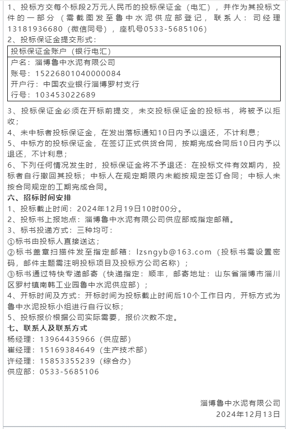 【招標(biāo)公告】魯中水泥、重山思沃瑞