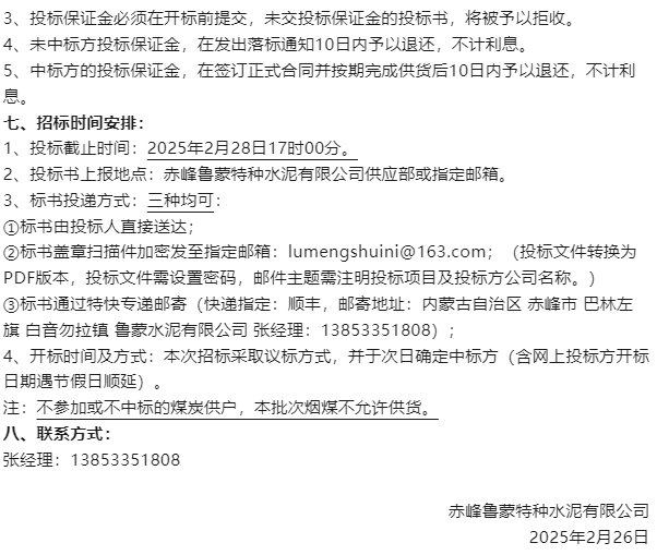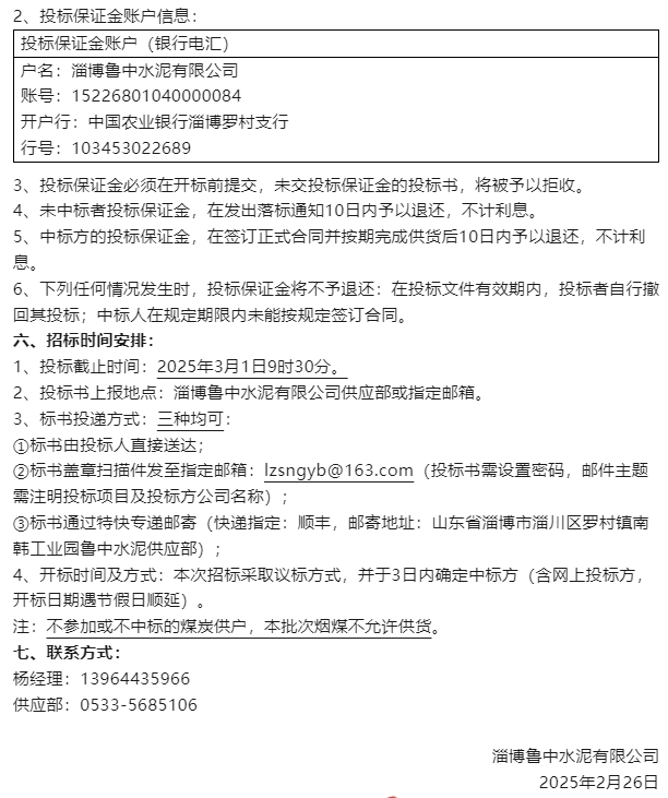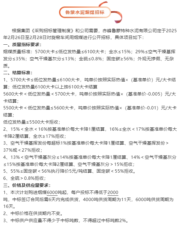 【招標(biāo)公告】魯中水泥、魯蒙水泥