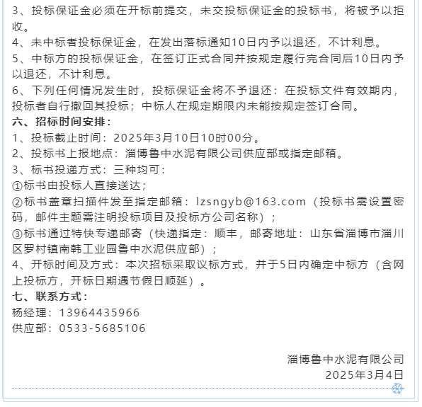 【招標(biāo)公告】魯中水泥