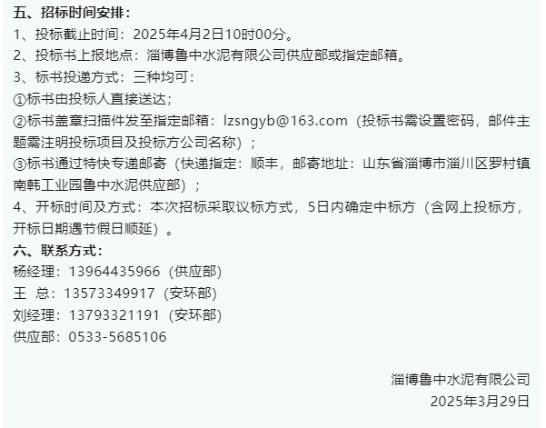 【招標(biāo)公告】魯中水泥、重山光電
