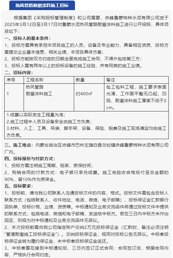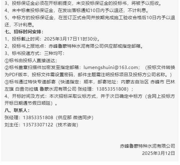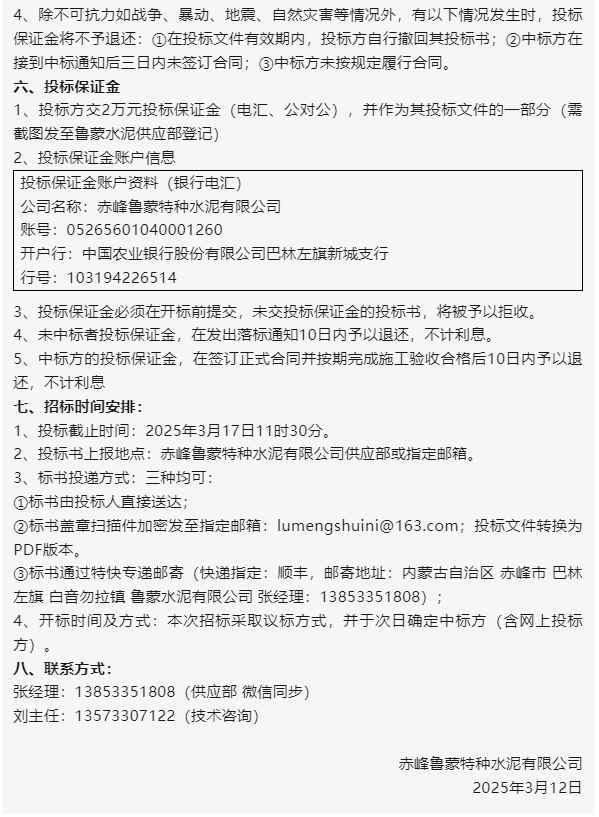 【招標(biāo)公告】魯蒙水泥