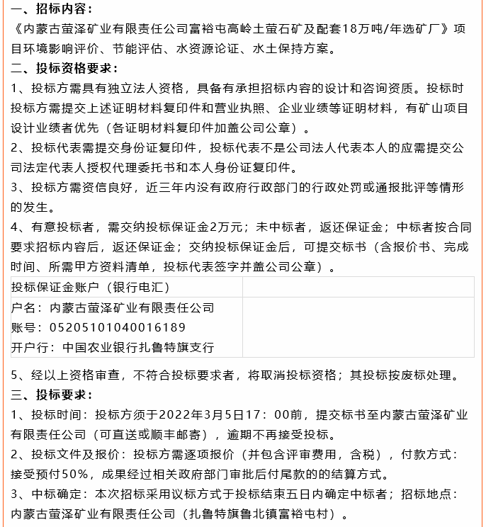 【招標(biāo)公告】重山光電、螢澤礦業(yè)