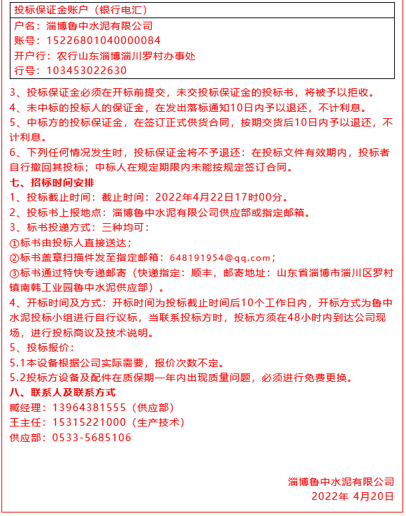 【招標(biāo)公告】魯中水泥