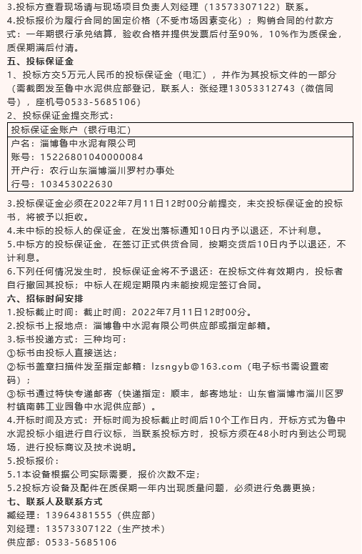 【招標公告】魯中水泥水渣、空氣斜槽及天橋連廊制作安裝、旋窯輥壓機機房加固、煙煤招標