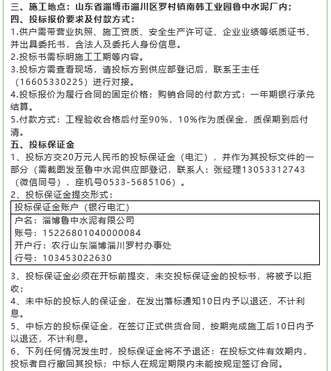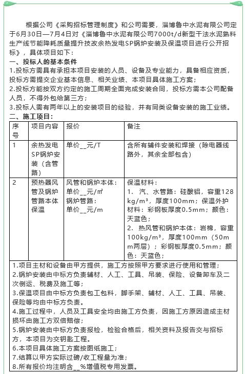 【招標公告】魯中水泥