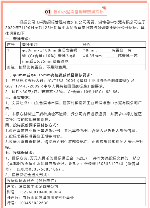 【招標(biāo)公告】魯中水泥高鉻鋼球置換、魯蒙水泥煙煤招標(biāo)