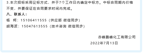 【招標(biāo)公告】鵬峰化工