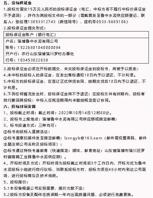 【招標公告】魯中水泥