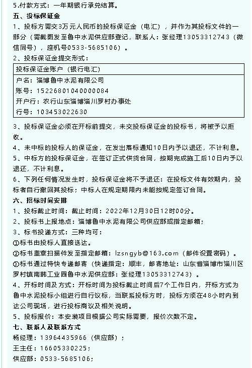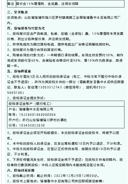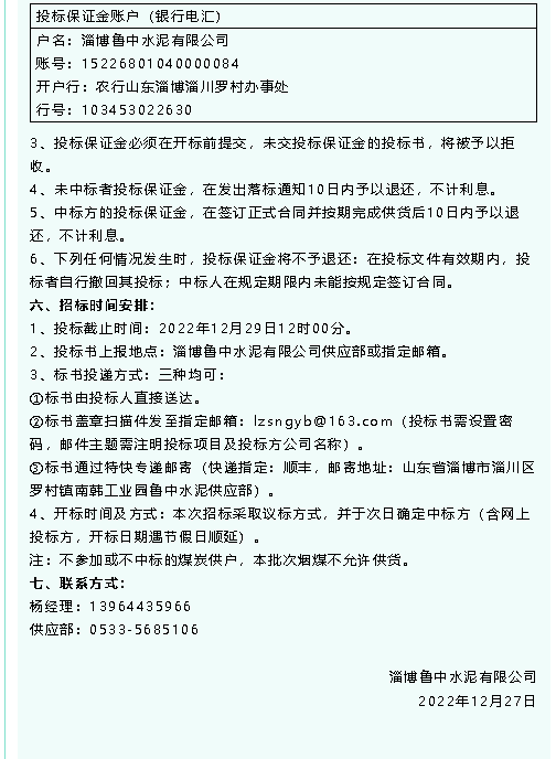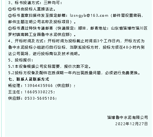【招標(biāo)公告】魯中水泥