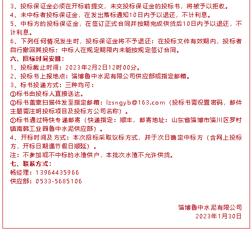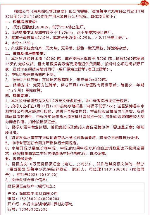 【招標公告】魯中水泥
