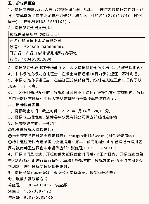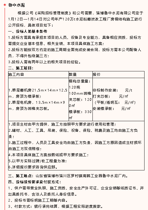 【招標公告】魯中水泥、魯蒙水泥