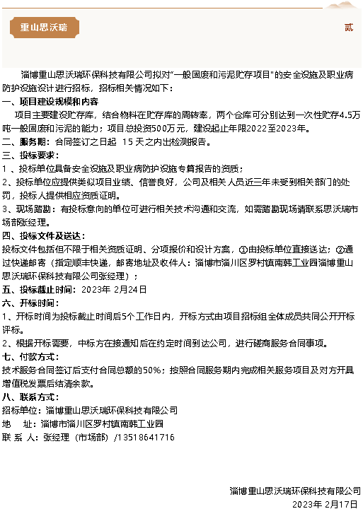 【招標(biāo)公告】魯中水泥、重山思沃瑞