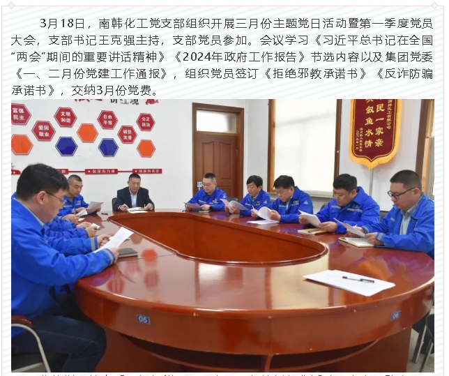 【黨建】南韓化工黨支部開展三月份主題黨日活動