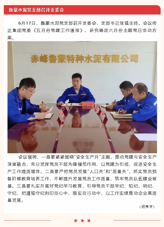 上一篇:【黨建】魯中水泥黨支部開展六月份主題黨日活動
