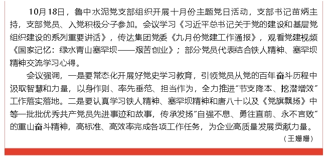 【黨建】集團機關(guān)黨支部、魯中水泥黨支部開展十月份主題黨日活動