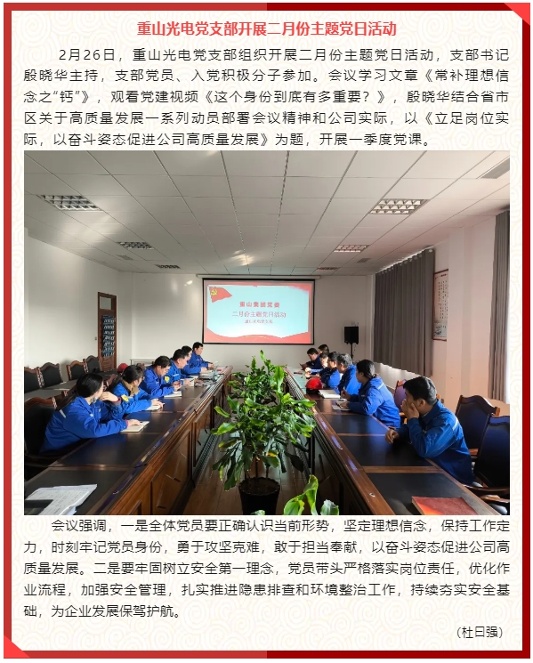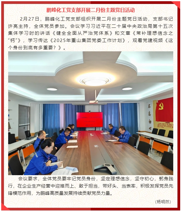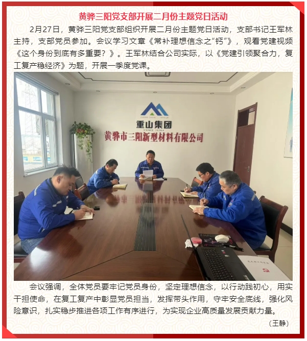 【黨建】重山光電黨支部、黃驊三陽黨支部、鵬峰化工黨支部分別開展二月份主題黨日活動(dòng)