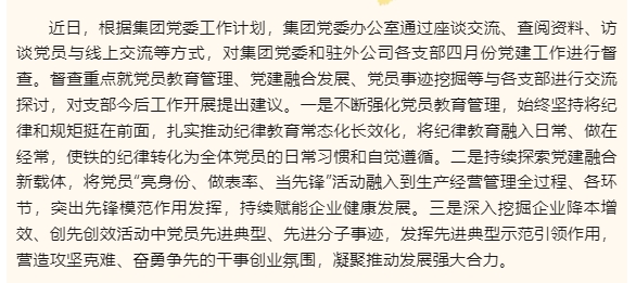 【黨建】集團(tuán)黨委開展四月份黨建工作督查