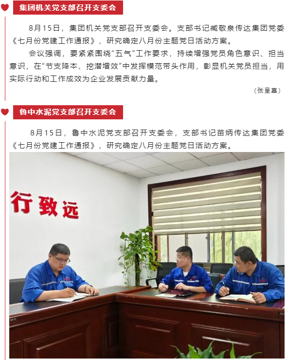 【黨建】集團(tuán)機(jī)關(guān)黨支部、魯中水泥黨支部、重山光電黨支部分別召開(kāi)支委會(huì)
