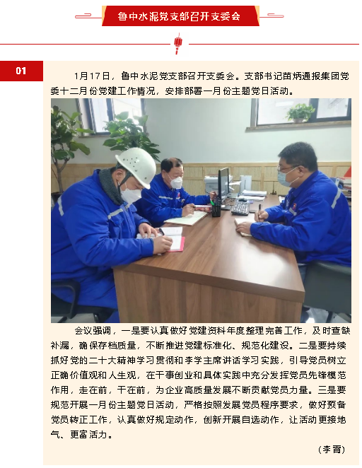 【黨建】魯中水泥黨支部召開支委會、鵬峰化工黨支部召開工作會議