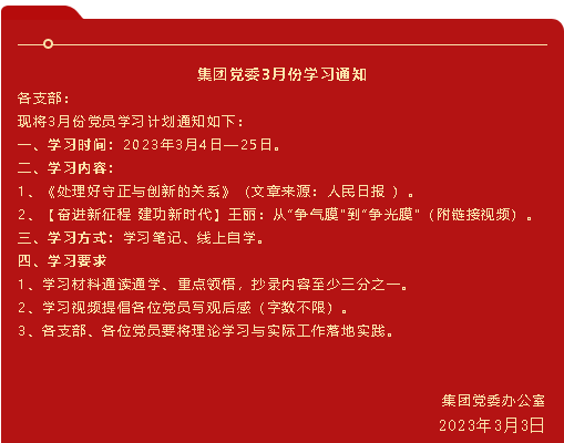 【通知】集團(tuán)黨委3月份學(xué)習(xí)通知