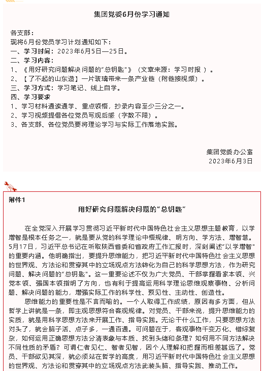 【通知】集團黨委6月份學習通知