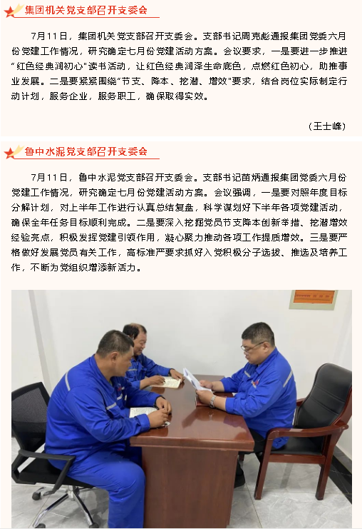 【黨建】集團(tuán)機(jī)關(guān)、魯中水泥、魯蒙水泥黨支部召開支委會(huì)