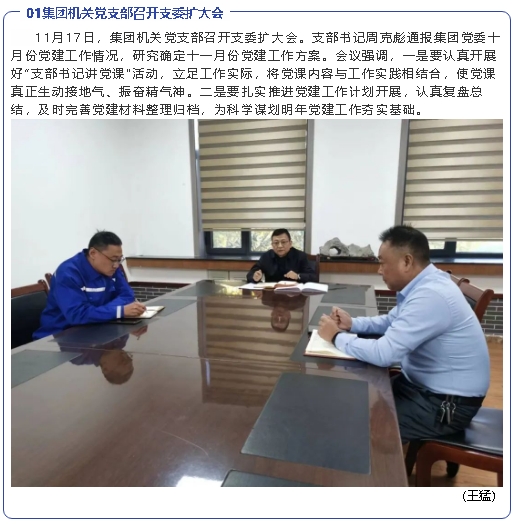 【黨建】集團(tuán)機(jī)關(guān)黨支部召開(kāi)支委擴(kuò)大會(huì)、南韓化工黨支部開(kāi)展十一月份主題黨日活動(dòng)