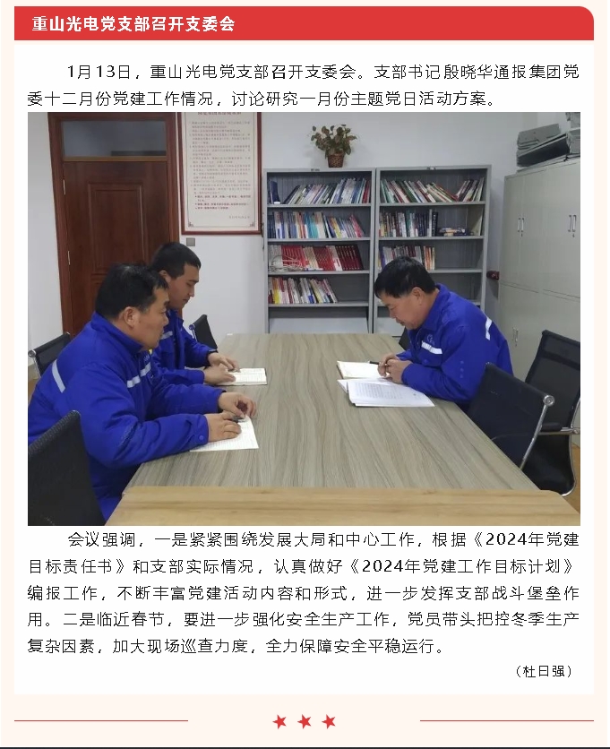 【黨建】黃驊三陽黨支部、重山光電黨支部召開支委會